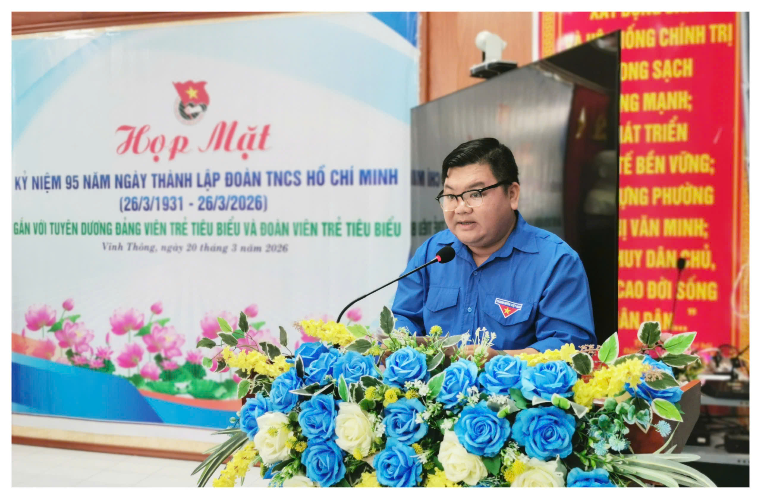 Ngày 20/3/2026, Ban Thường vụ phường Đoàn Vĩnh Thông đã tổ chức Họp mặt kỷ niệm 95 năm Ngày thành lập Đoàn Thanh niên công sản Hồ Chí Minh để ôn lại truyền thống vẻ vang của tổ chức Đoàn, đồng thời tuyên dương đảng viên trẻ tiêu biểu, cán bộ đoàn tiêu biểu, đoàn viên trẻ tiêu biểu hoàn thành xuất sắc nhiệm vụ năm 2025 nhằm tiếp tục động viên các thế hệ cán bộ Đoàn trên mọi cương vị công tác không ngừng học tập, lao động, cống hiến, xây dựng tổ chức Đoàn ngày càng vững mạnh, góp phần xây dựng Đảng, Nhà nước và bảo vệ Tổ quốc.
