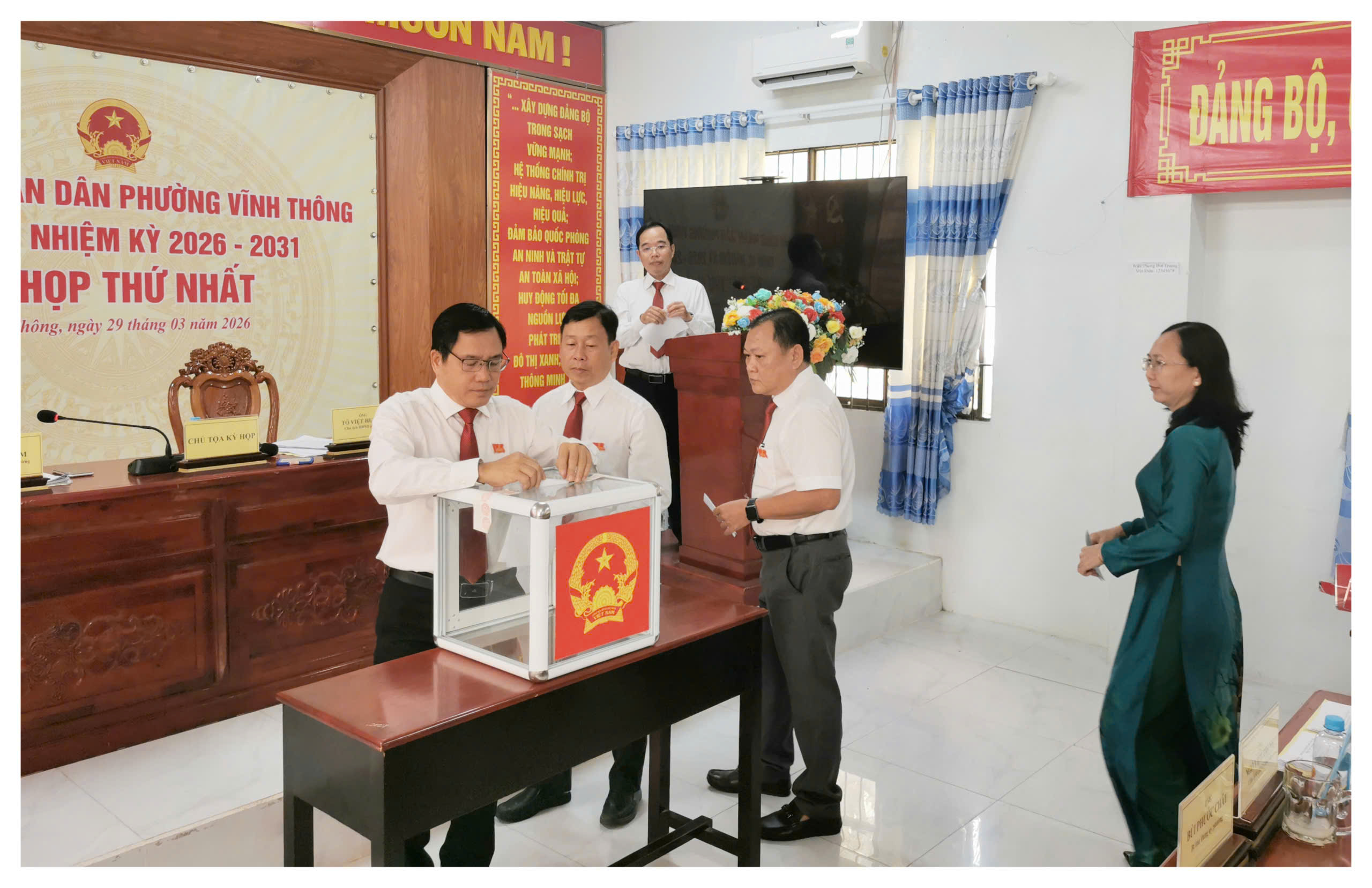 Ngày 29/3/2026, Hội đồng nhân dân phường Vĩnh Thông đã tổ chức kỳ họp thứ nhất Hội đồng nhân dân phường khóa VI, nhiệm kỳ 2026 - 2031. 25/25 vị vừa trúng cử đại biểu Hội đồng nhân dân phường khóa VI, nhiệm kỳ 2026 – 2031 được triệu tập đã tham dự kỳ họp này. Đồng chí Bùi Phước Châu, Bí thư Đảng ủy phường Vĩnh Thông đến dự và phát biểu chỉ đạo. Tham dự kỳ họp có lãnh đạo các phòng, ban, Ủy ban mặt trận Tổ quốc, các đoàn thể phường và Ban lãnh đạo các khu phố trên địa bàn phường Vĩnh Thông.