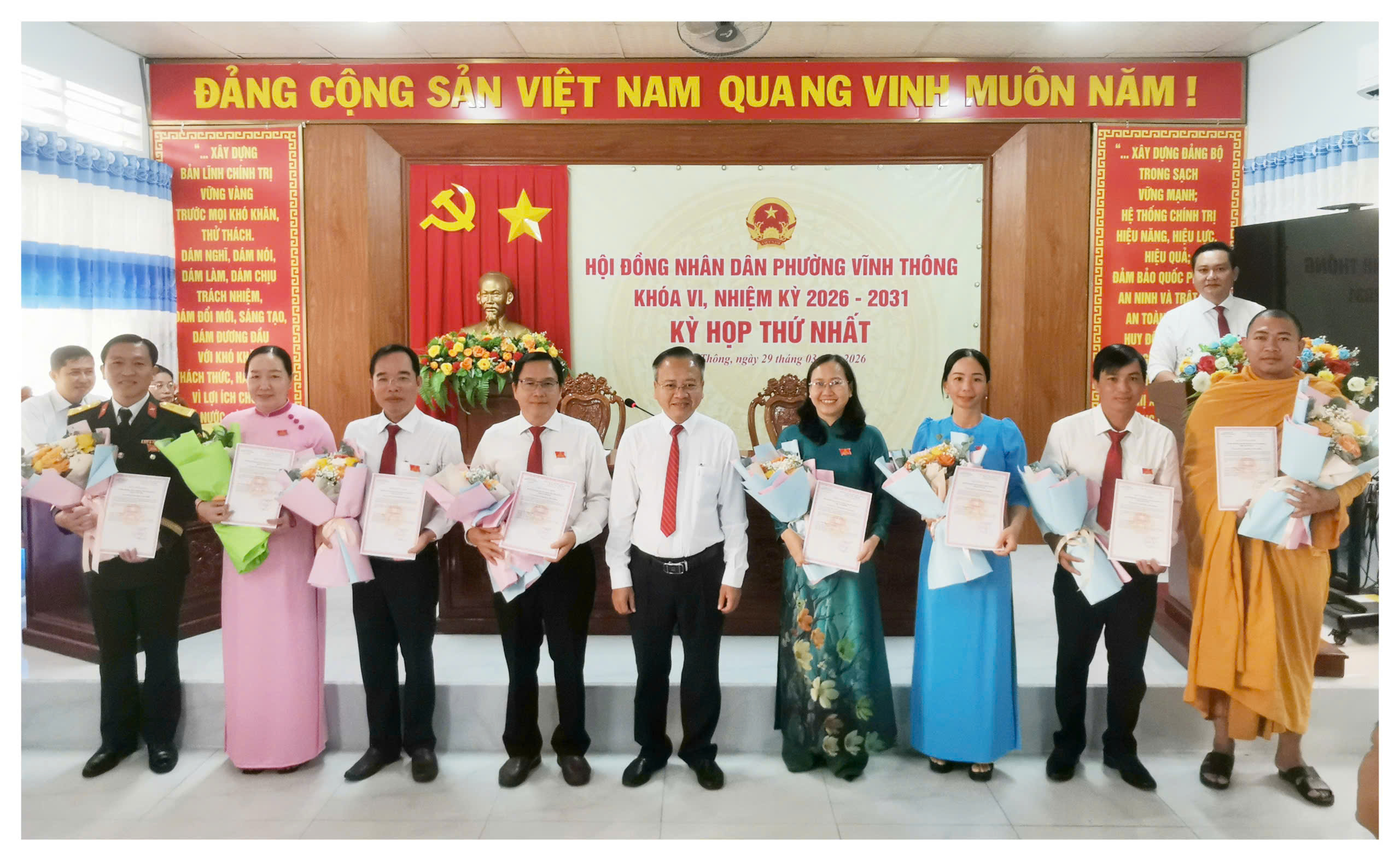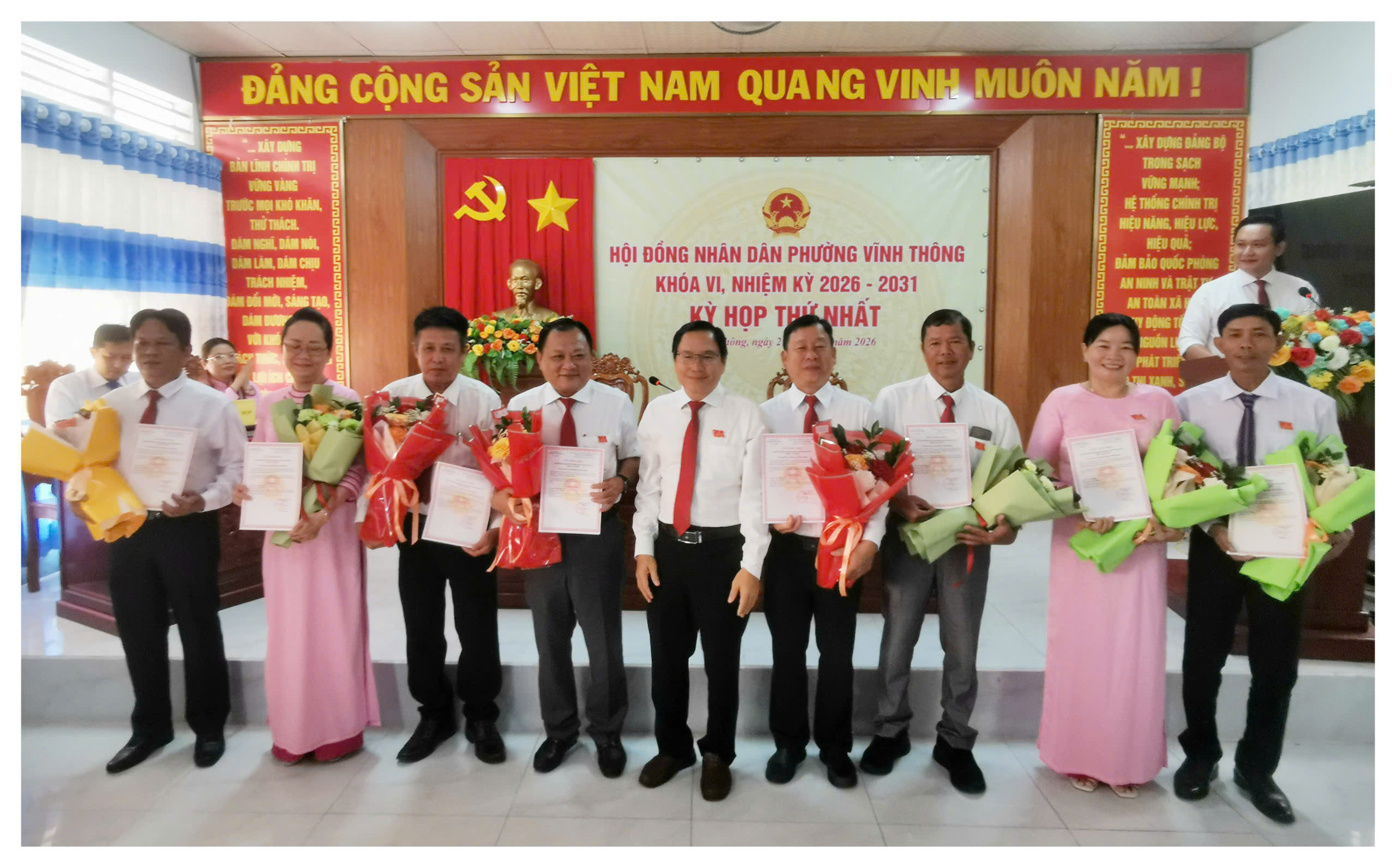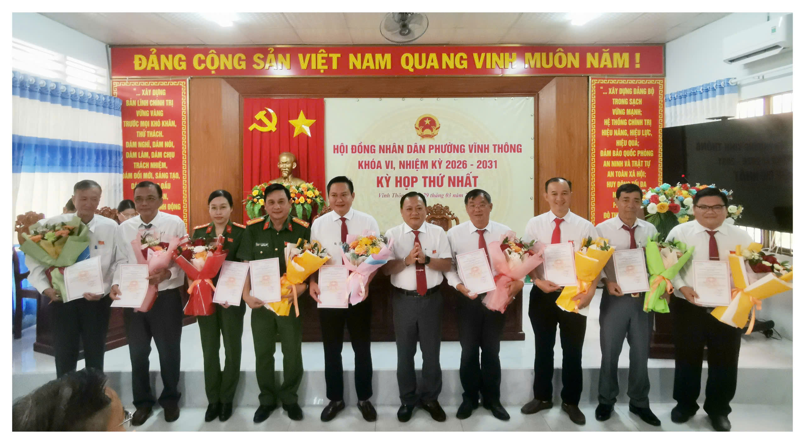 Hội đồng nhân dân phường đã trao giấy chứng nhận và tặng hoa chúc mừng 25 vị trúng cử đại biểu Hội đồng nhân dân phường Vĩnh Thông khóa VI, nhiệm kỳ 2026 - 2031./.