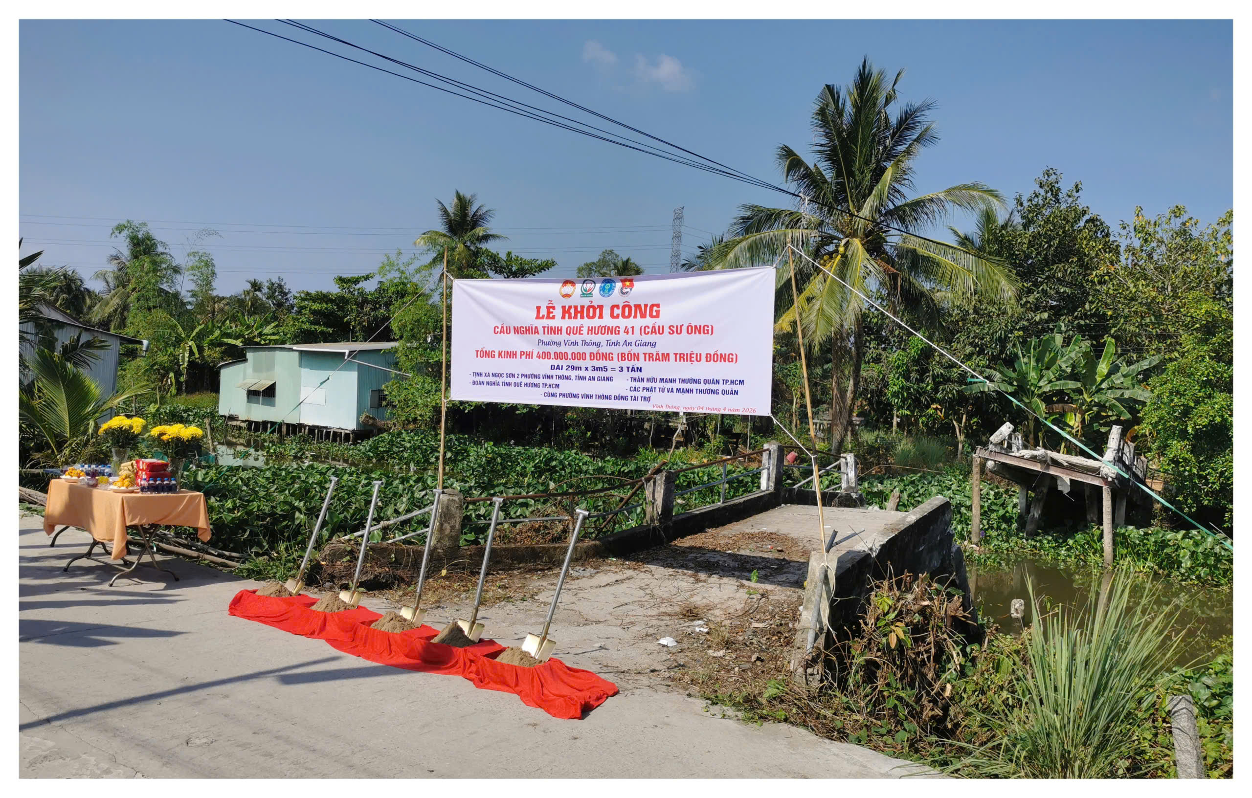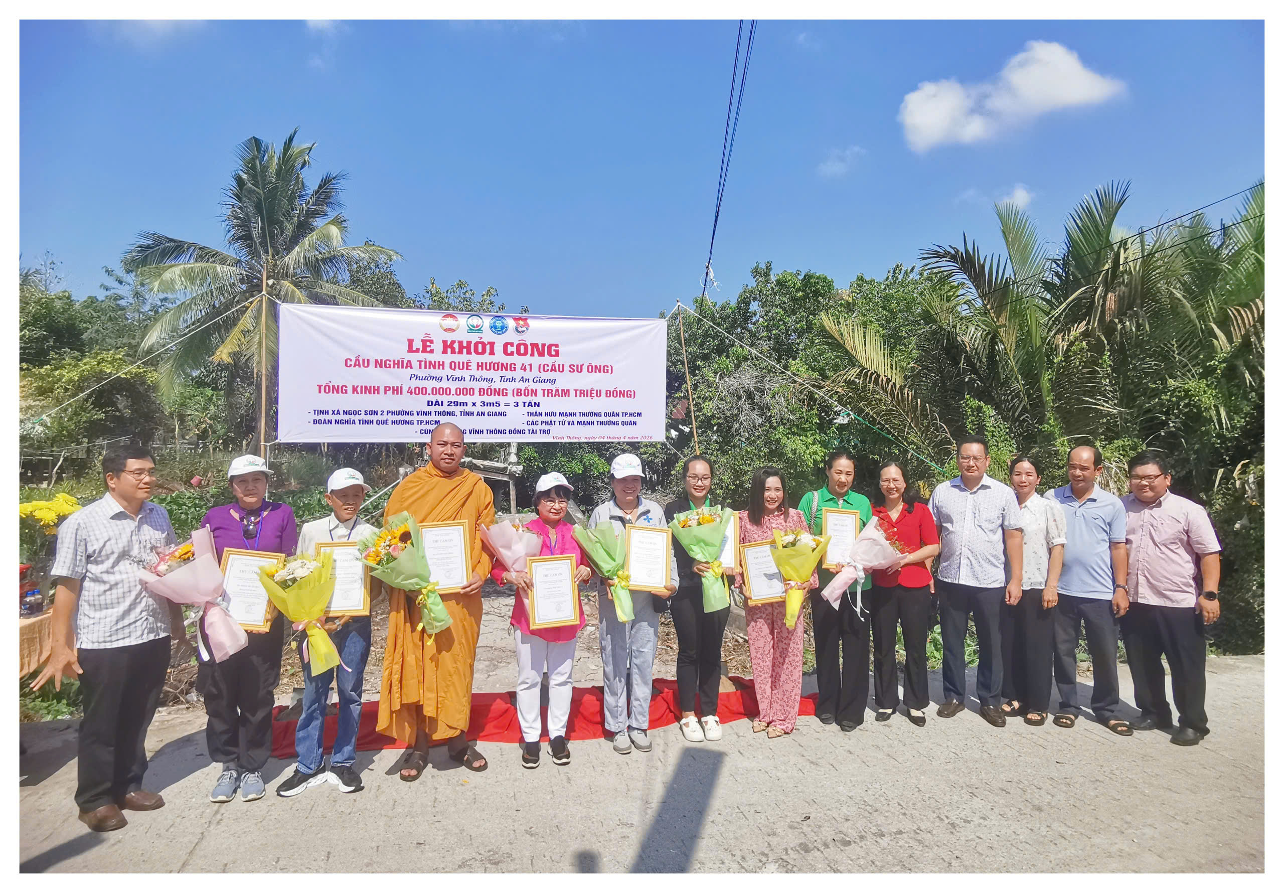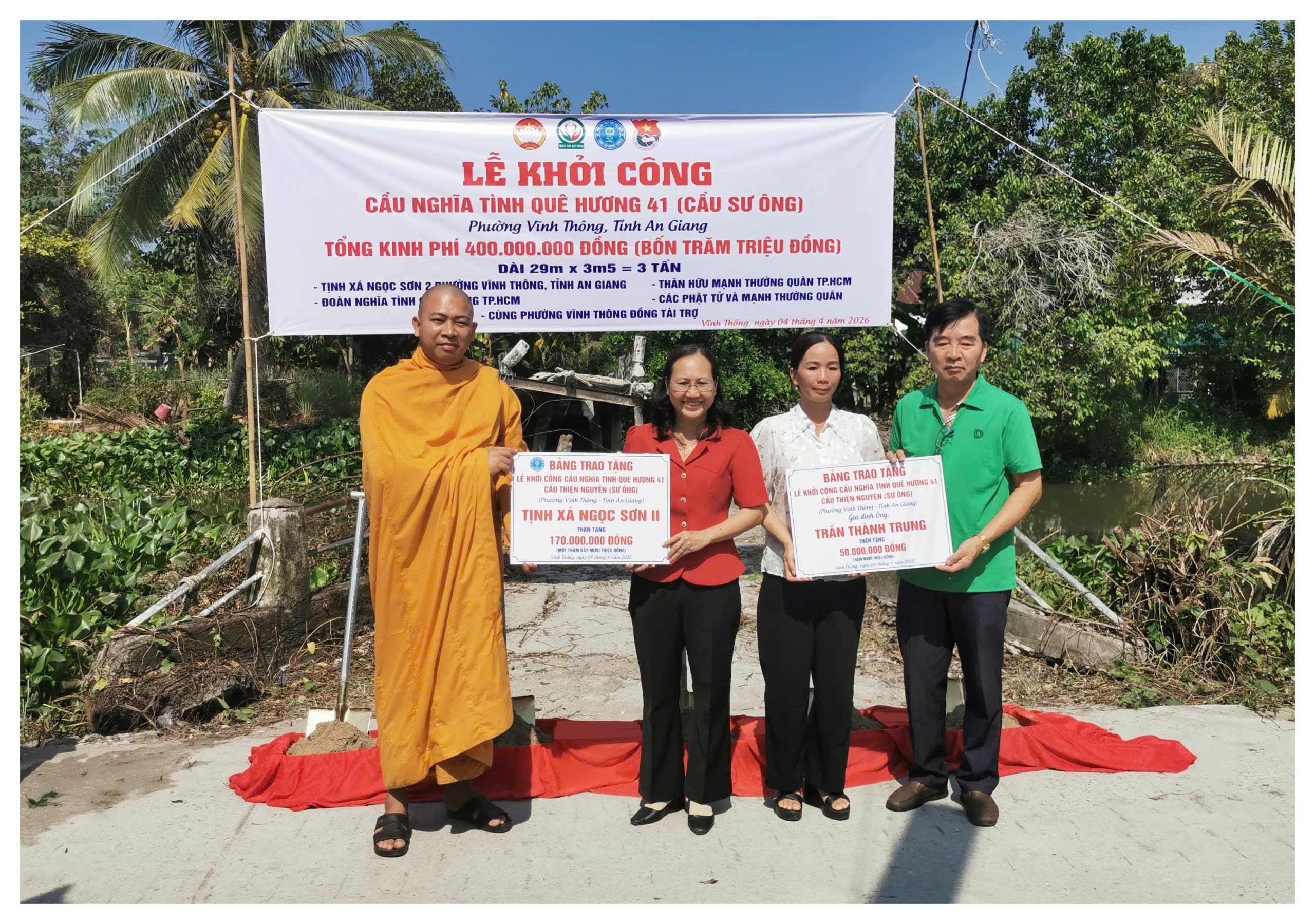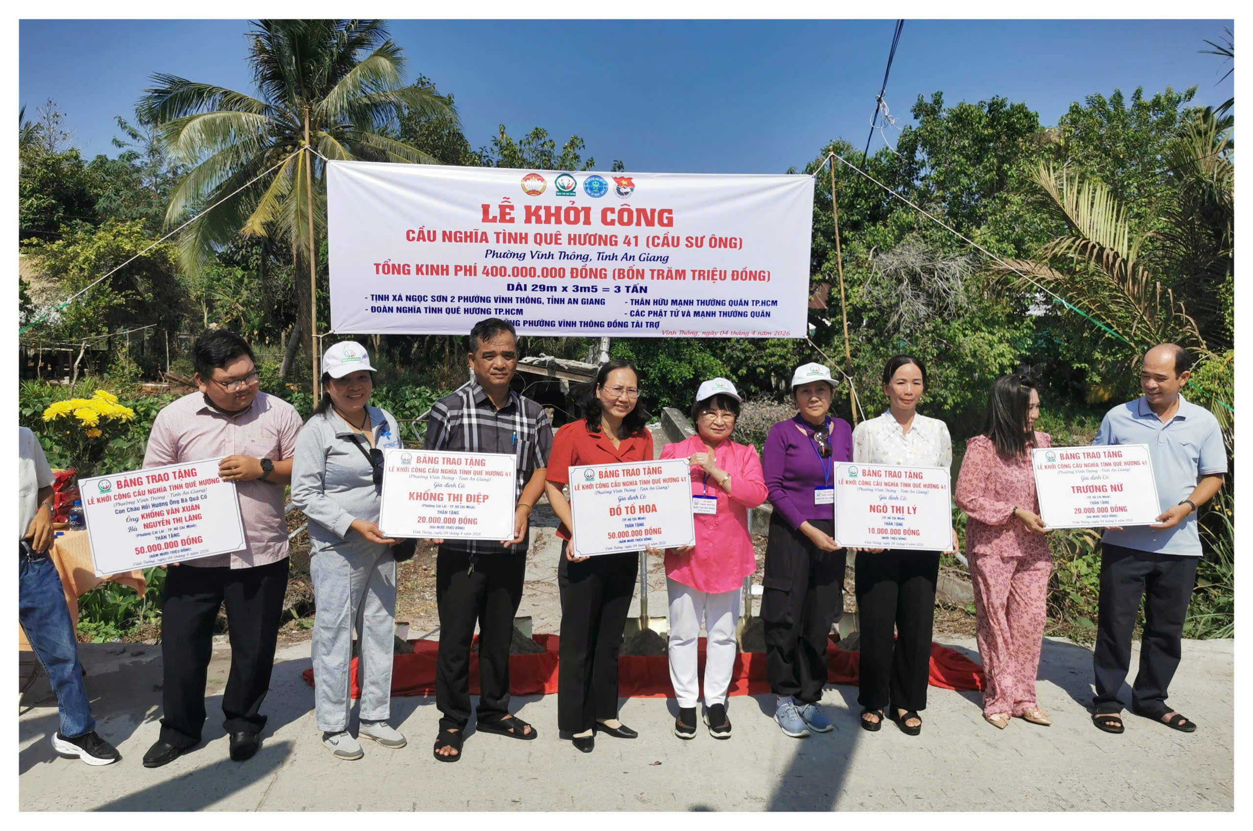 Ngày 4/4/2026, Ủy ban Mặt trận Tổ quốc Việt Nam phường Vĩnh Thông, tỉnh An Giang phối hợp với Ủy ban nhân dân phường và Đoàn Thiện nguyện nghĩa tình quê hương thành phố Hồ Chí Minh đã tổ chức lễ khởi công công trình cầu Vàm Trư.