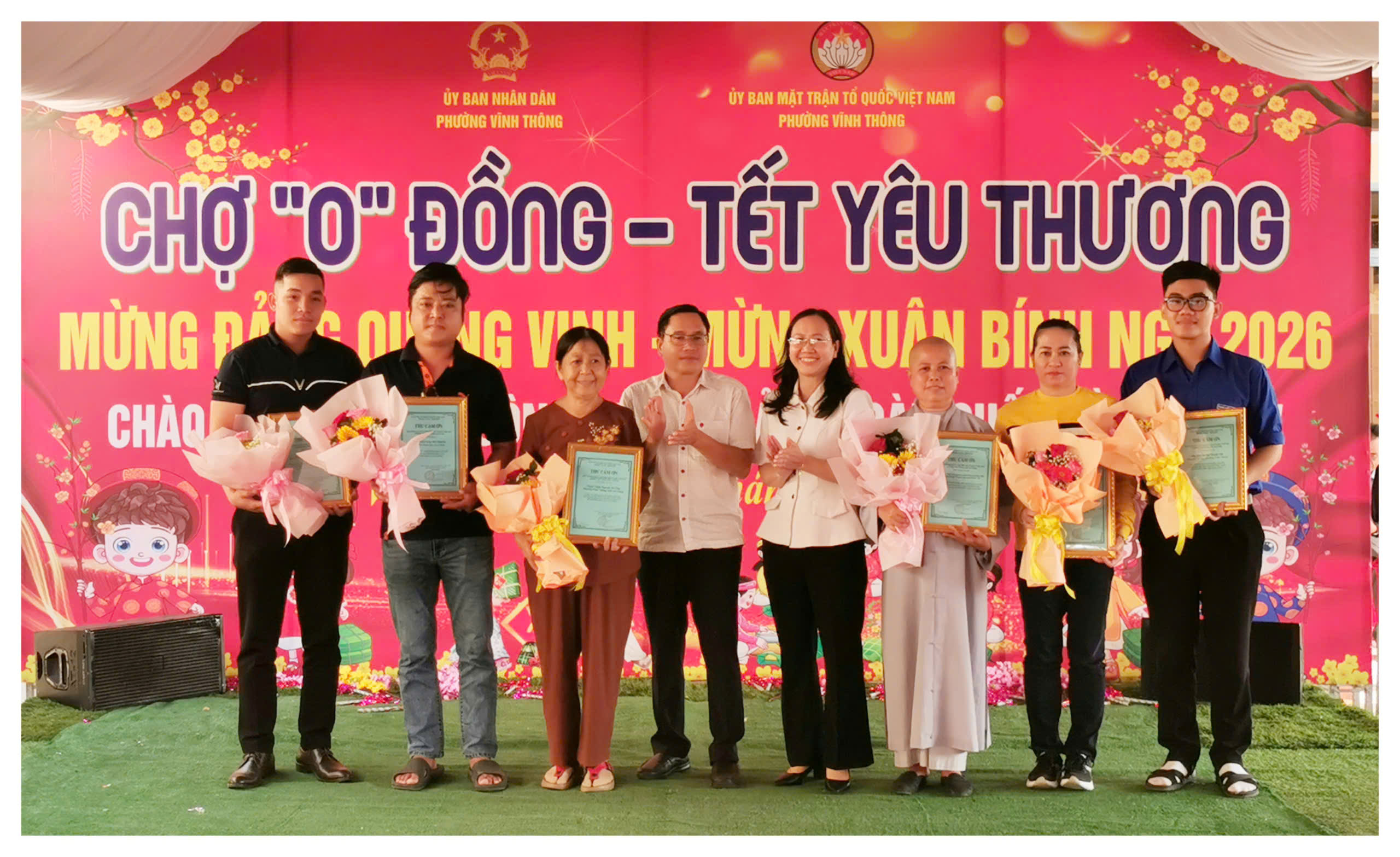 Ngày 01/02/2026, Ủy ban mặt trận tổ quốc Việt Nam phường phối hợp với Ủy ban nhân dân phường Vĩnh Thông tổ chức Phiên chợ 0 đồng xuân 2026 với chủ đề: “Tết yêu thương, mừng Đảng quang vinh – mừng Xuân Bính ngọ”. Đây là một trong những hoạt động thiết thực chào mừng kỷ niệm 96 năm Ngày thành lập Đảng Cộng sản Việt Nam (03/02/1930 - 03/02/2026); chào mừng thành công Đại hội lần thứ XIV của Đảng; thể hiện tinh thần “Đại Đoàn kết toàn dân tộc”. Phiên chợ đã được sự tài trợ của các tổ chức doanh nghiệp, đơn vị xã hội từ thiện đóng góp tài chính, nông sản hàng hóa, lương thực, thực phẩm nhằm chia sẻ yêu thương, hỗ trợ và tạo điều kiện để mọi người dân trên địa bàn phường Vĩnh Thông đều vui xuân, đón tết an lành và hạnh phúc.