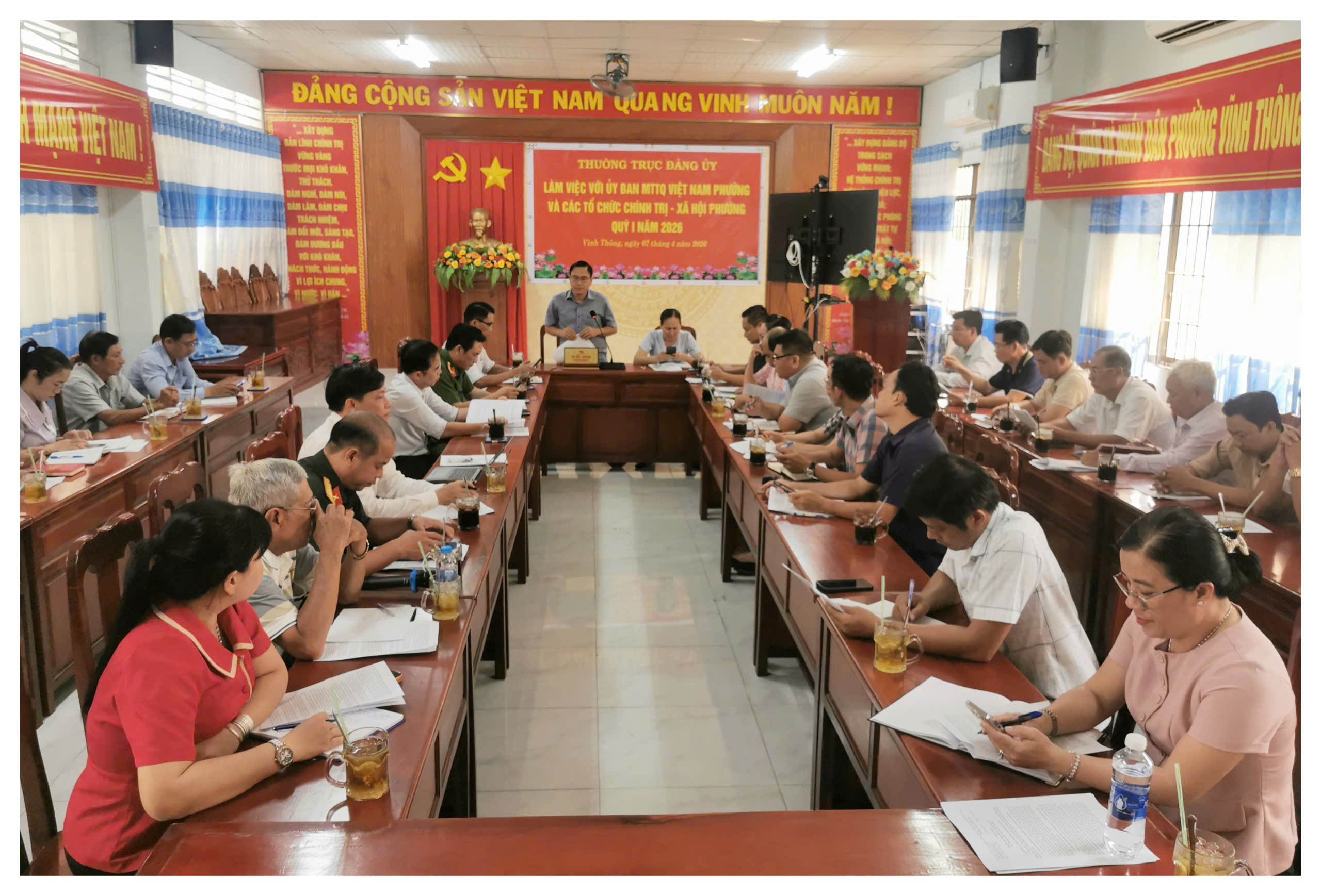 Ngày 7/4/2026, Thường trực Đảng ủy phường Vĩnh Thông, tỉnh An Giang đã làm việc với Ủy ban Mặt trận Tổ quốc Việt Nam phường và các tổ chức chính trị - xã hội phường quý I năm 2026.