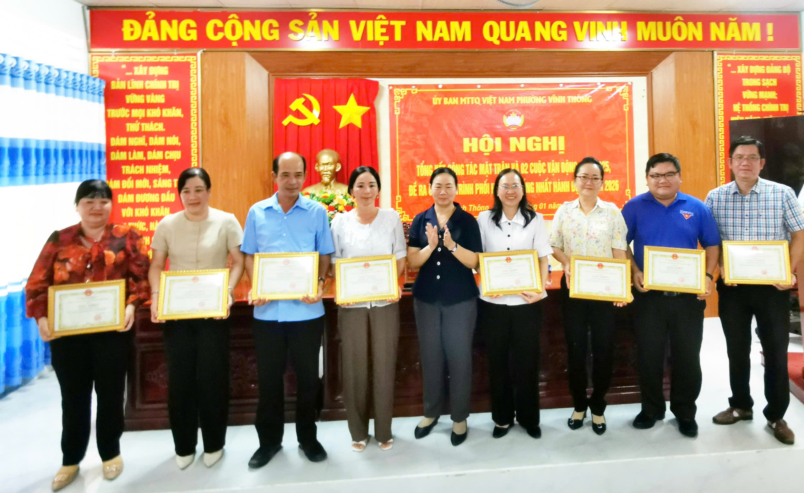 Ngày 19/01/2026, Ủy ban mặt trận tổ quốc Việt Nam phường Vĩnh Thông, tỉnh An Giang đã tổ chức hội nghị tổng kết công tác Mặt trận và hai cuộc vận động: “Toàn dân đoàn kết xây dựng nông thôn mới, đô thị văn minh” và “Người Việt Nam ưu tiên dùng hàng Việt Nam” năm 2025.