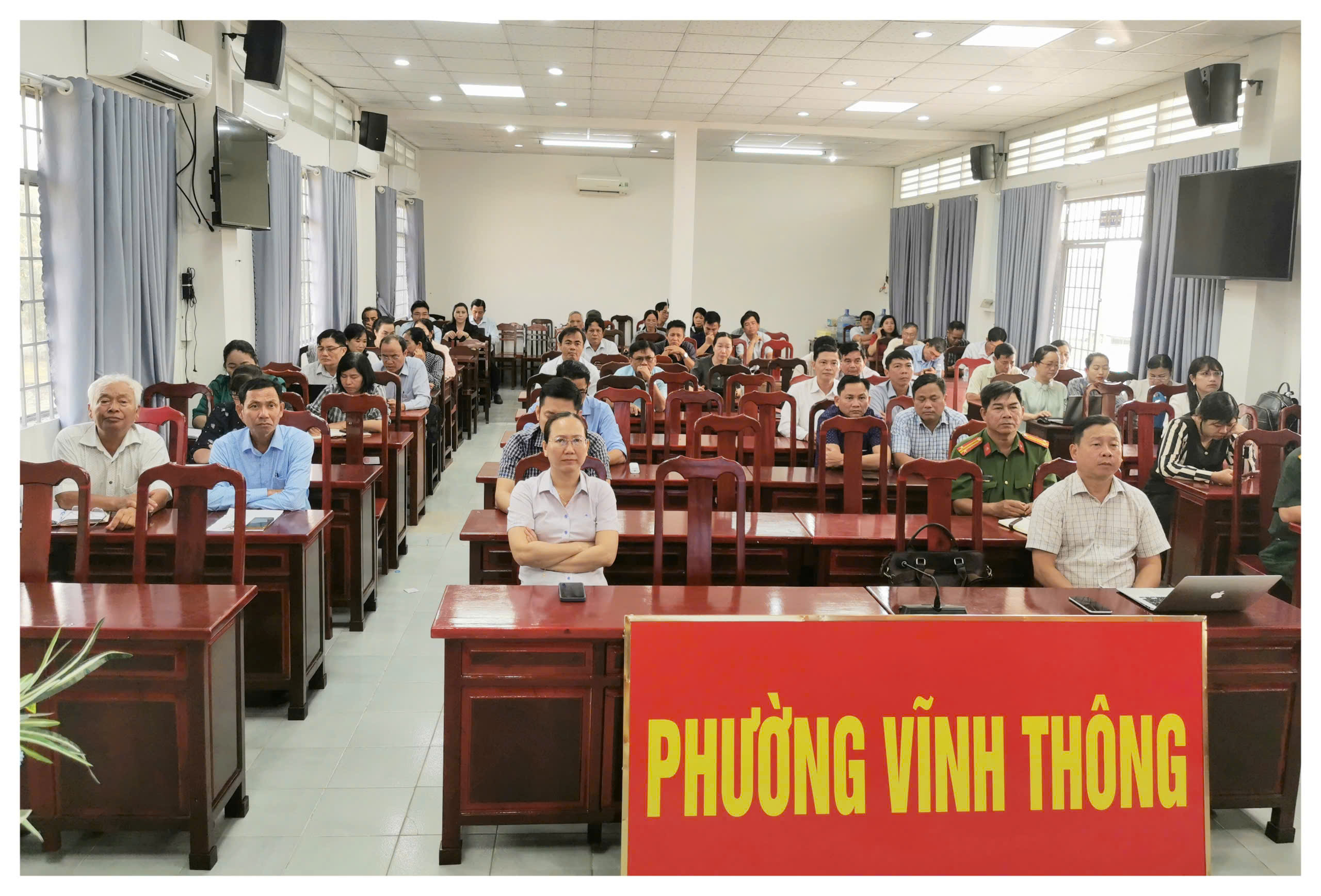 Tham dự hội nghị trực tuyến tại điểm cầu phường Vĩnh Thông, tỉnh An Giang có các đồng chí Ủy viên Ban Thường vụ, Ủy viên Ban Chấp hành Đảng ủy, Hội đồng nhân dân, Ủy ban nhân dân, Ủy ban Mặt trận Tổ quốc Việt Nam phường Vĩnh Thông và các báo cáo viên Đảng ủy phường Vĩnh Thông.